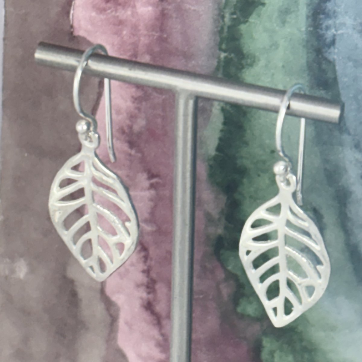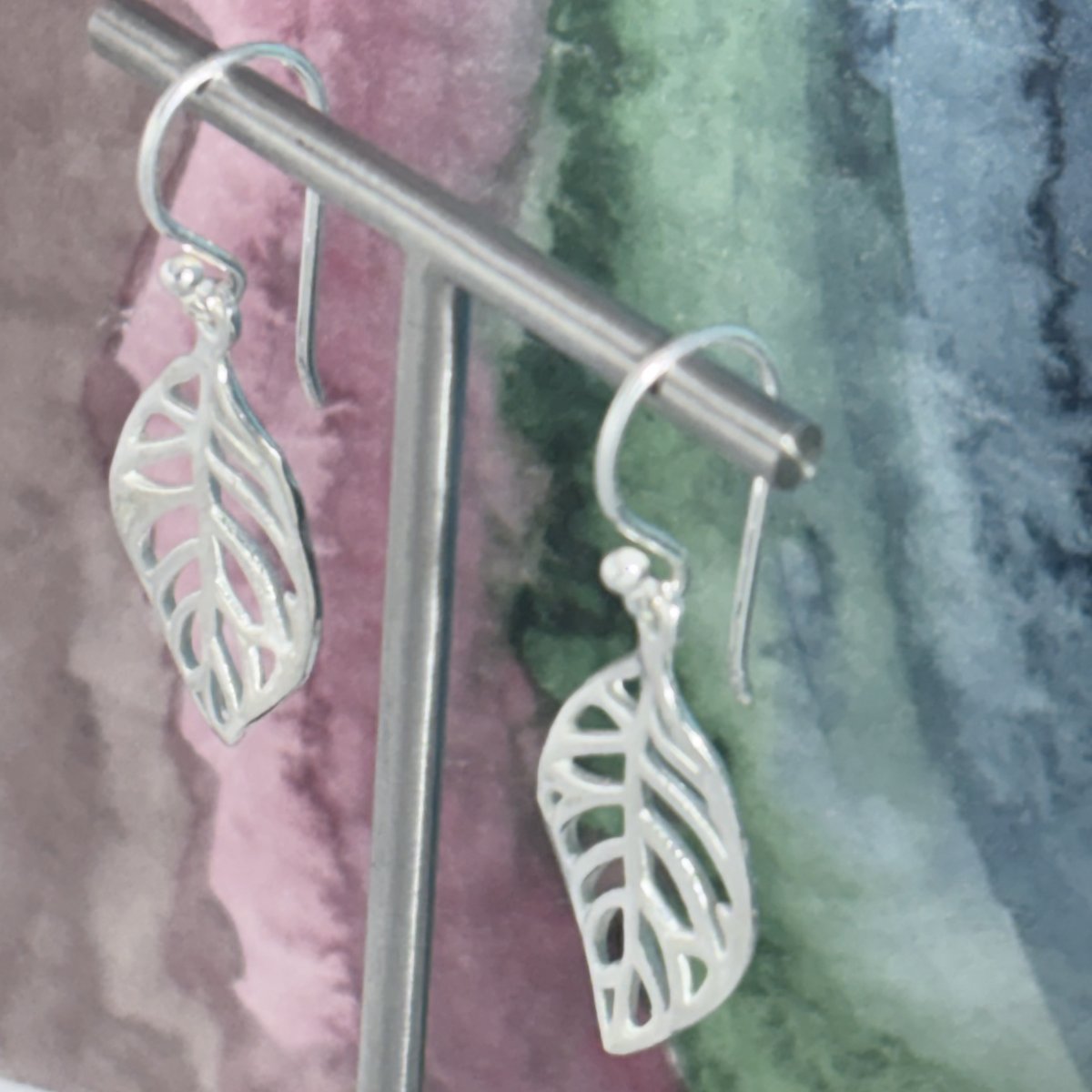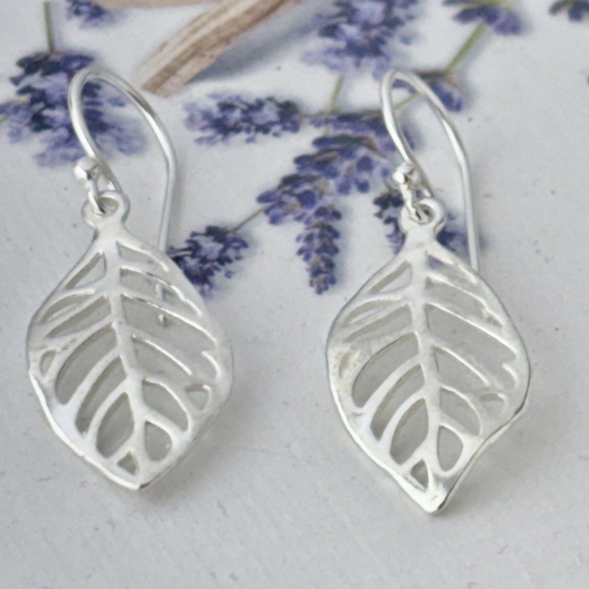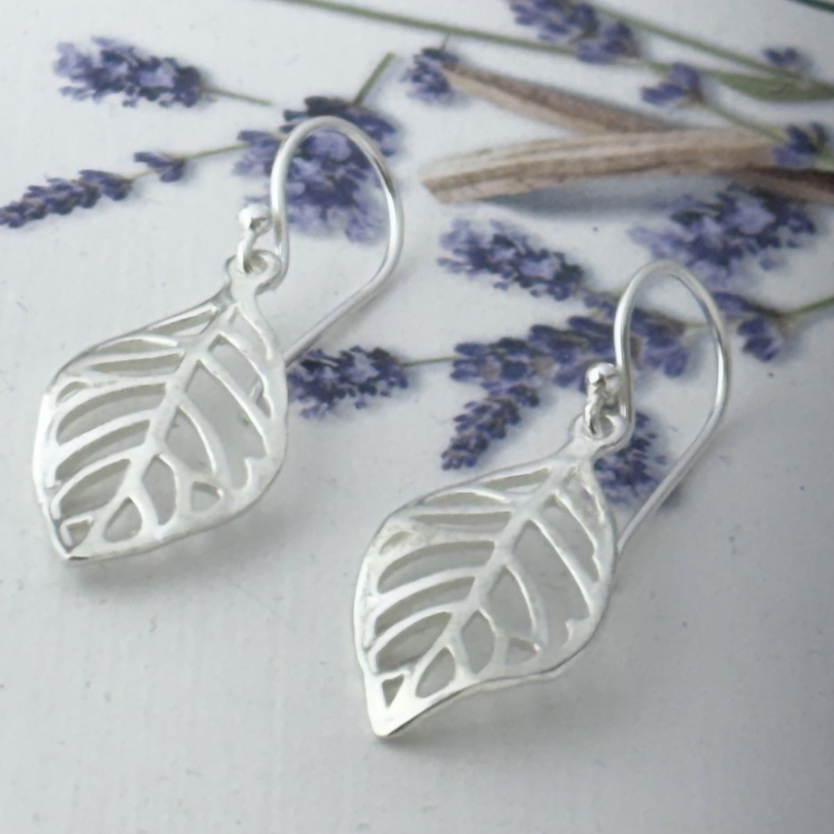 Små örhängen i äkta silver formade som löv